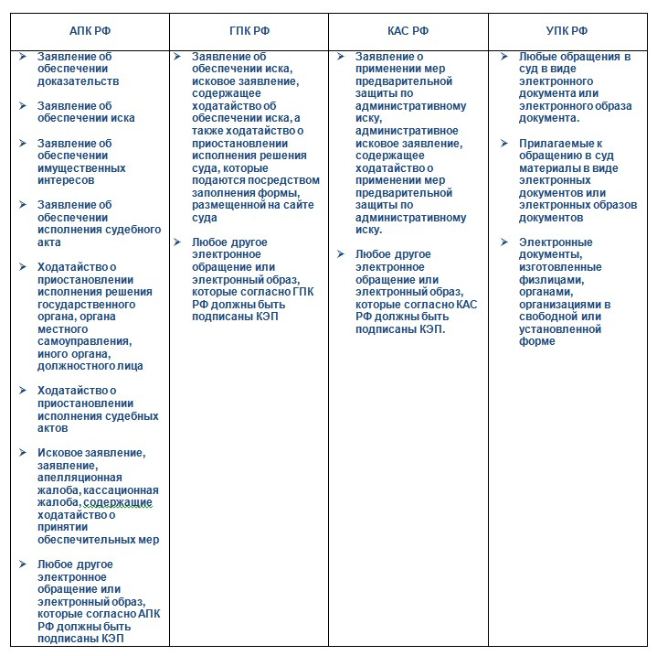Квалифицированная подпись обязательна, например, для заявлений и ходатайств, которые содержат требование о принятии обеспечительных мер. В уголовном процессе она нужна для подписания любых обращений в электронной форме.
