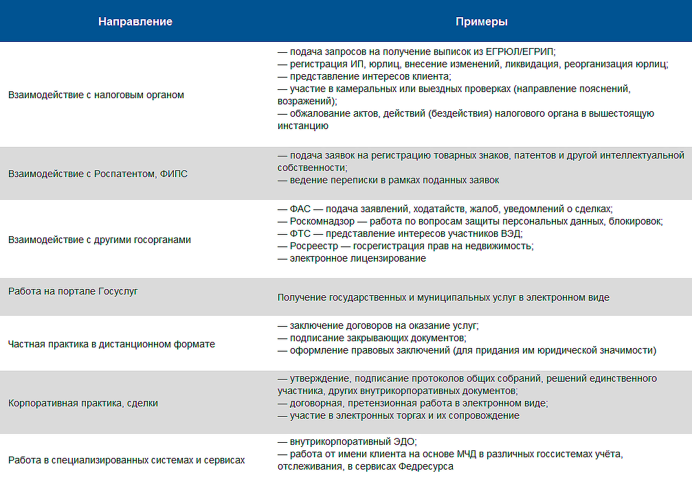 Учитывая также широкое распространение электронного документооборота в России, сферы применения юристами КЭП разнообразны и многочисленны. Во многом они определены спецификой юридической практики и уровнем внедрения ЭДО в деятельность юридической компании или частнопрактикующего юриста.