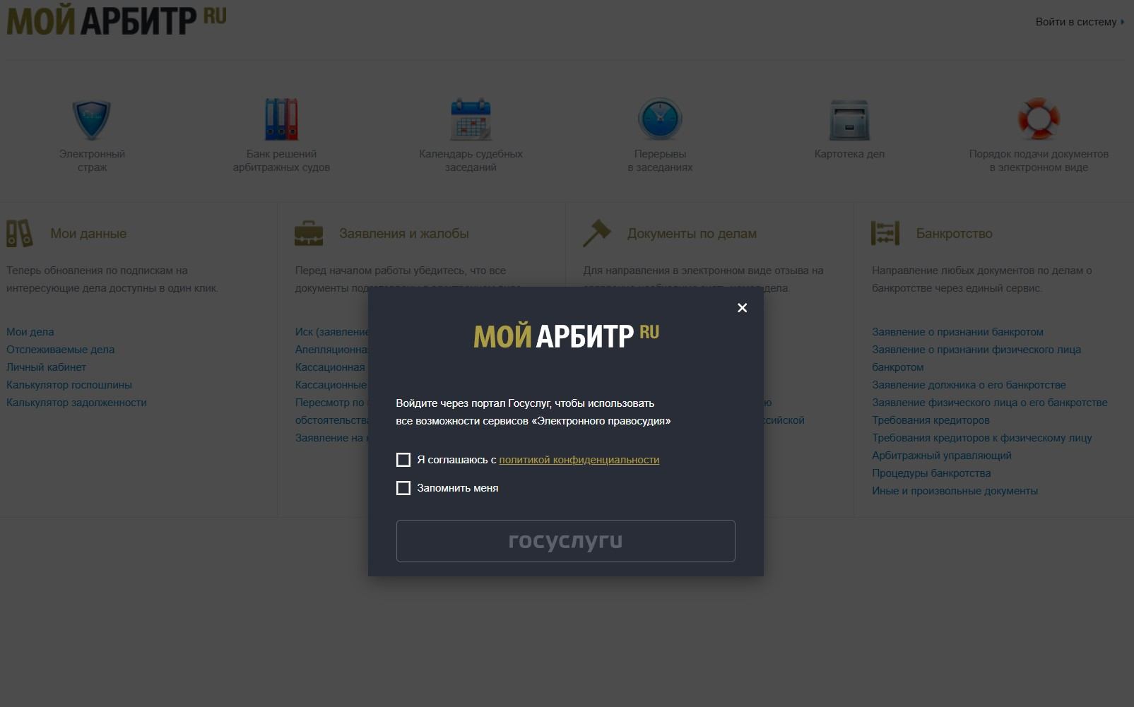 Данные из Госуслуг будут автоматически загружены в ЛК пользователя в системе «Мой арбитр». Их можно дополнить или изменить. Личный кабинет будет создан после первой авторизации (с помощью КЭП или посредством введения логина и пароля).